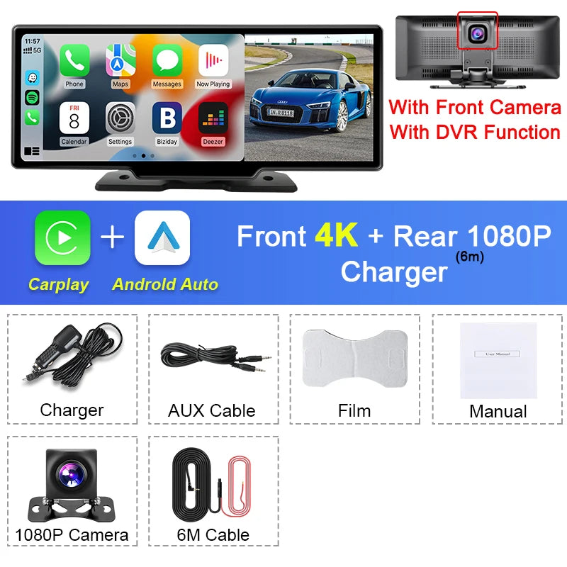 Ben je klaar om jouw autoritten naar een hoger niveau te tillen? Het DriveMax Pro™ navigatiesysteem biedt alles wat je nodig hebt om je reis te optimaliseren: van een scherp 10-inch touchscreen tot volledige connectiviteit met Apple CarPlay, Android Auto en Bluetooth. Met ingebouwde functies zoals een achteruitrijcamera, FM-transmitter, en AUX-aansluitingen, is dit de complete oplossing voor elke auto. Maak elke rit efficiënter, veiliger en plezieriger met de DriveMax Pro™!