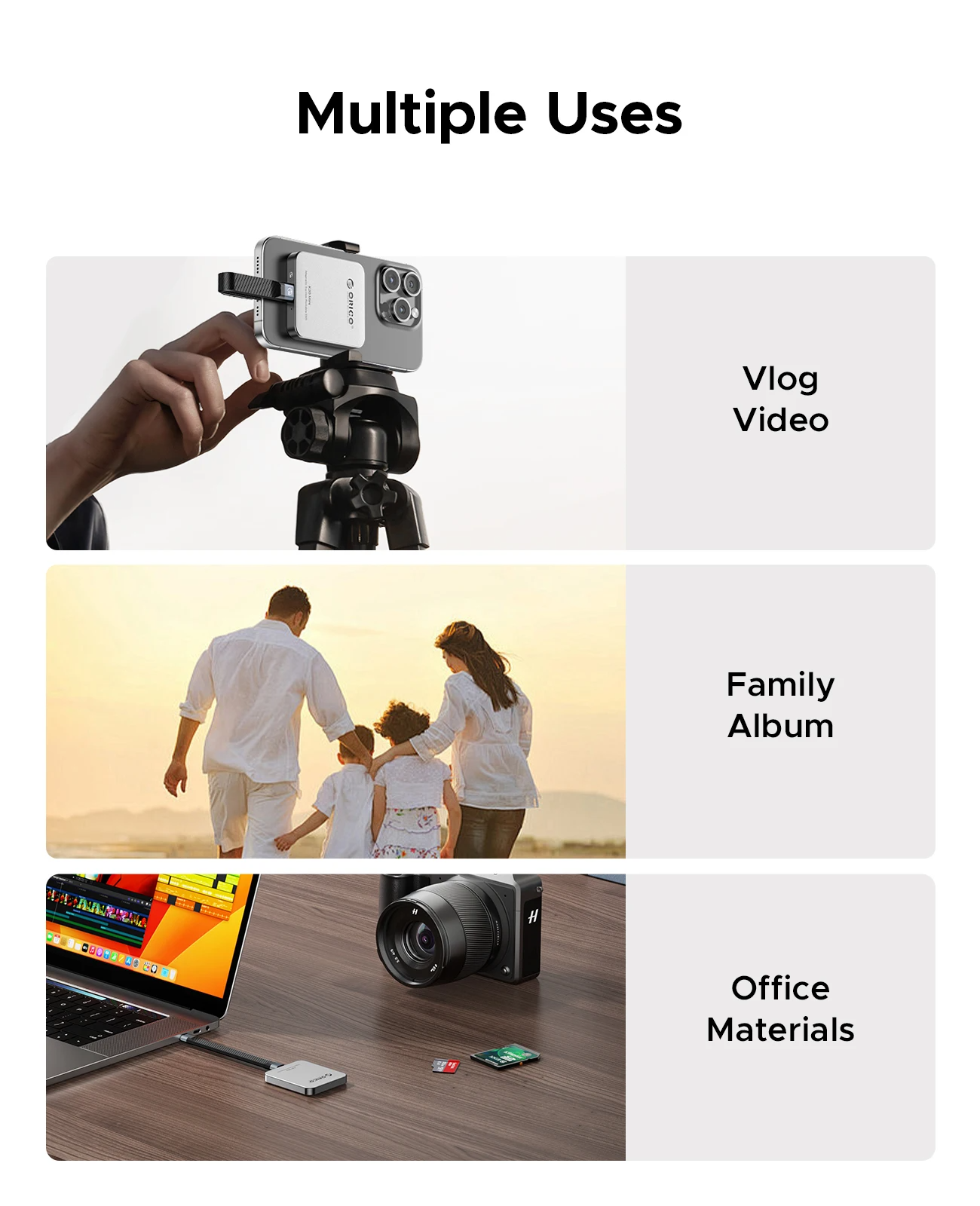Met de ORICO K20 Mini MagSafe SSD heb je altijd extra opslagruimte bij de hand. Geen zorgen meer over te weinig ruimte op je apparaten. Sla al je video's, foto's en bestanden direct op en bewaar kostbare herinneringen zonder gedoe.