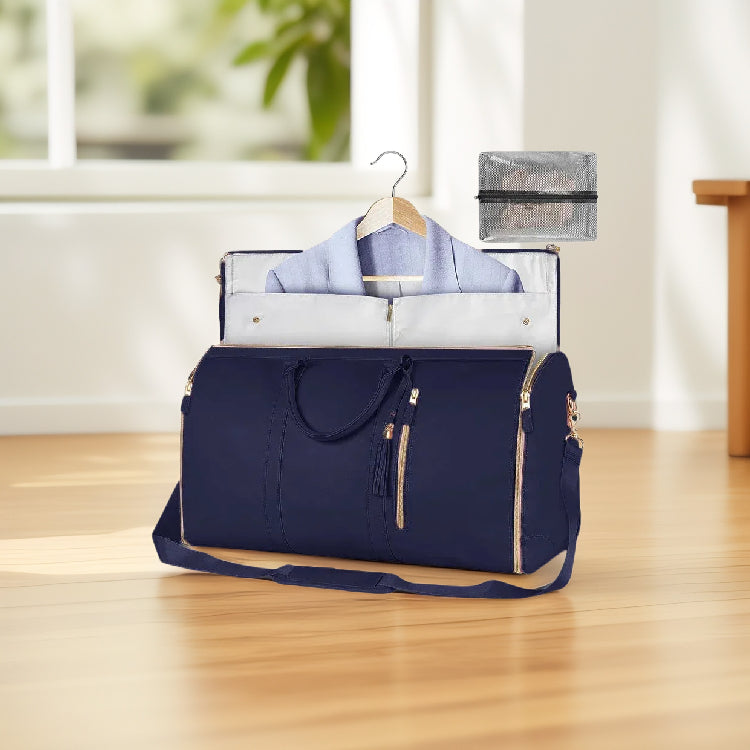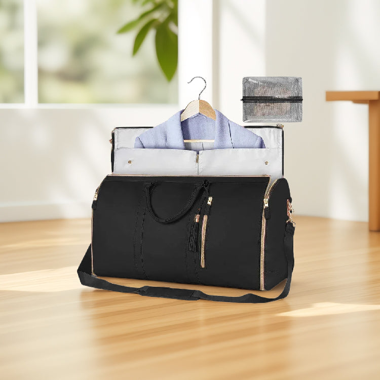 Zeg maar vaarwel tegen overvolle koffers! De TravelStyle Foldable Garment Bag biedt voldoende ruimte voor meerdere outfits, waardoor je georganiseerd blijft en alles netjes op zijn plaats blijft. Je hebt alles wat je nodig hebt voor een reis, zonder concessies te doen aan ruimte of gemak.