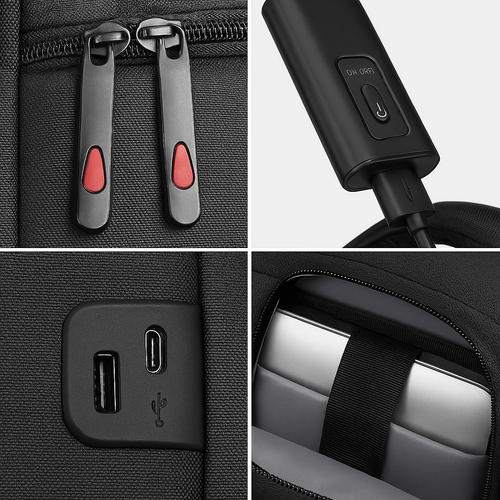 Naast de slimme ruimtebesparing houdt VacuPack Pro ook je waardevolle spullen veilig. De meerdere compartimenten zorgen voor een georganiseerde koffer, terwijl de anti-diefstal ritszakken je bezittingen beschermen tegen ongewenste handen. Gemaakt van duurzame materialen en ontworpen voor ultiem comfort, zodat je zorgeloos en fris op reis gaat!